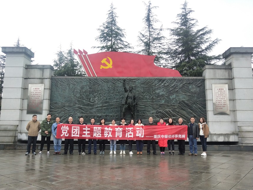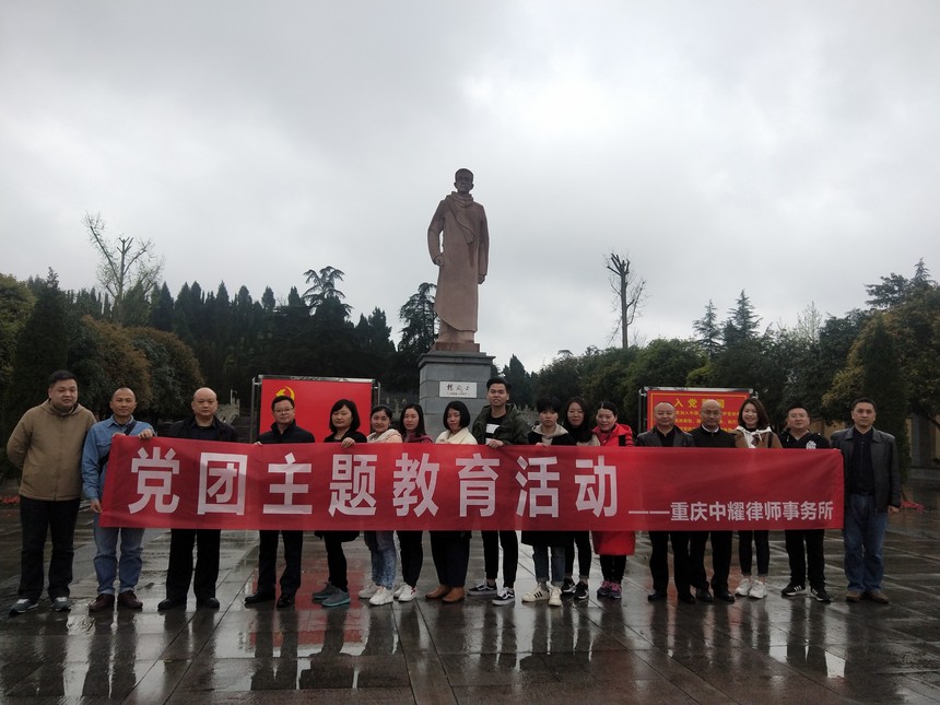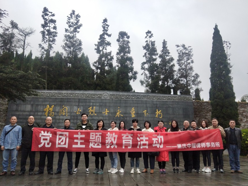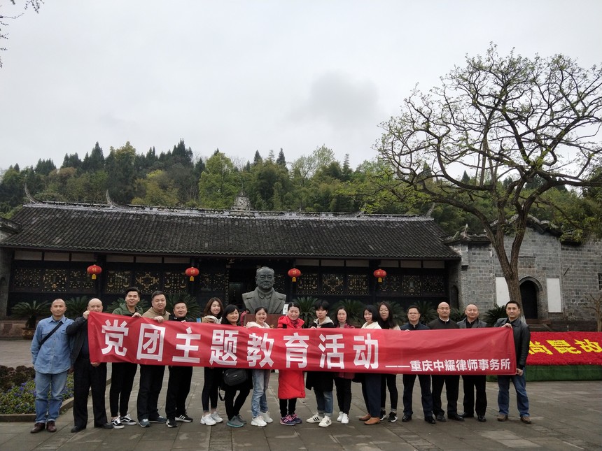 重庆中耀律师事务所2019年党团主题教育活动时间:2019-03-26 为加强我所党建工作,增进集体凝聚力,2019年3月22日律所全体人员积极响应党的号召,在党委书记的带领下来到了国家伟大领导人杨尚昆和革命先辈杨闇公的故乡---潼南,并前往了杨闇公陵园和杨尚昆故居,追思革命先辈,开展组织生活,接受红色教育。 本次党团教育活动中,我所律师全面回顾了杨闇公烈士可歌可泣的革命事迹和“宁死不屈、大义凛然”的革命气节、“人生如马掌铁,磨灭方休”的精神。同时体会了杨尚昆同志作为伟大的无产阶级革命家、政治家为中国人民的解放事业和建设事业贡献毕生精力的伟大情操。激励并牢固了我所每一位律师为维护社会公平正义,恪尽职责,勤勉敬业的使命感。